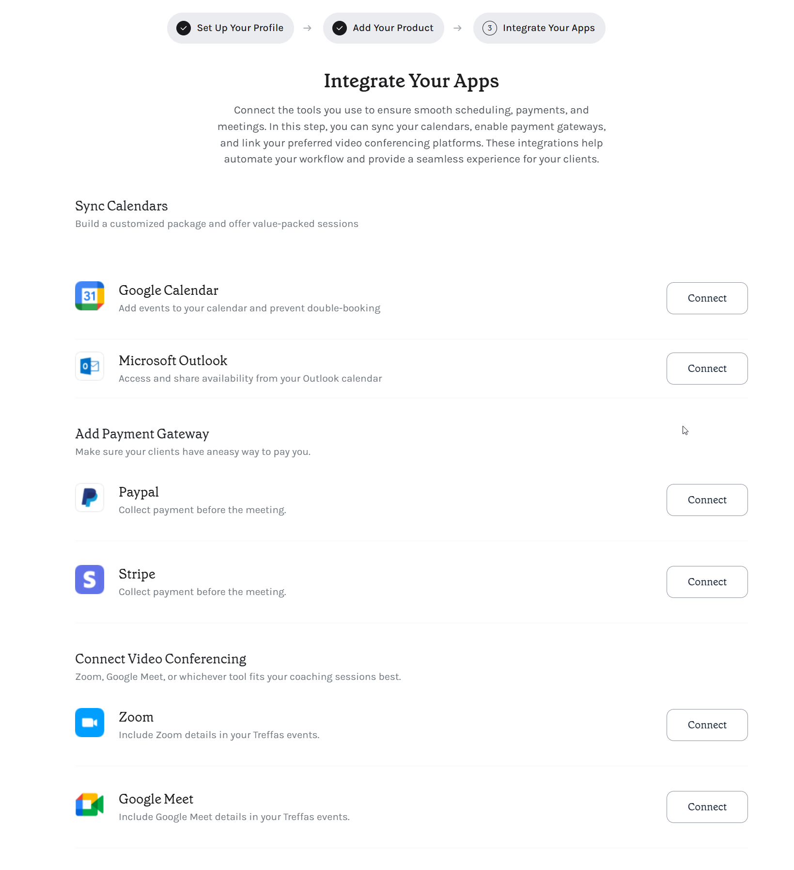 Connect the tools you already use to automate scheduling, payments, and meetings. Integrations help eliminate manual work and prevent booking conflicts.